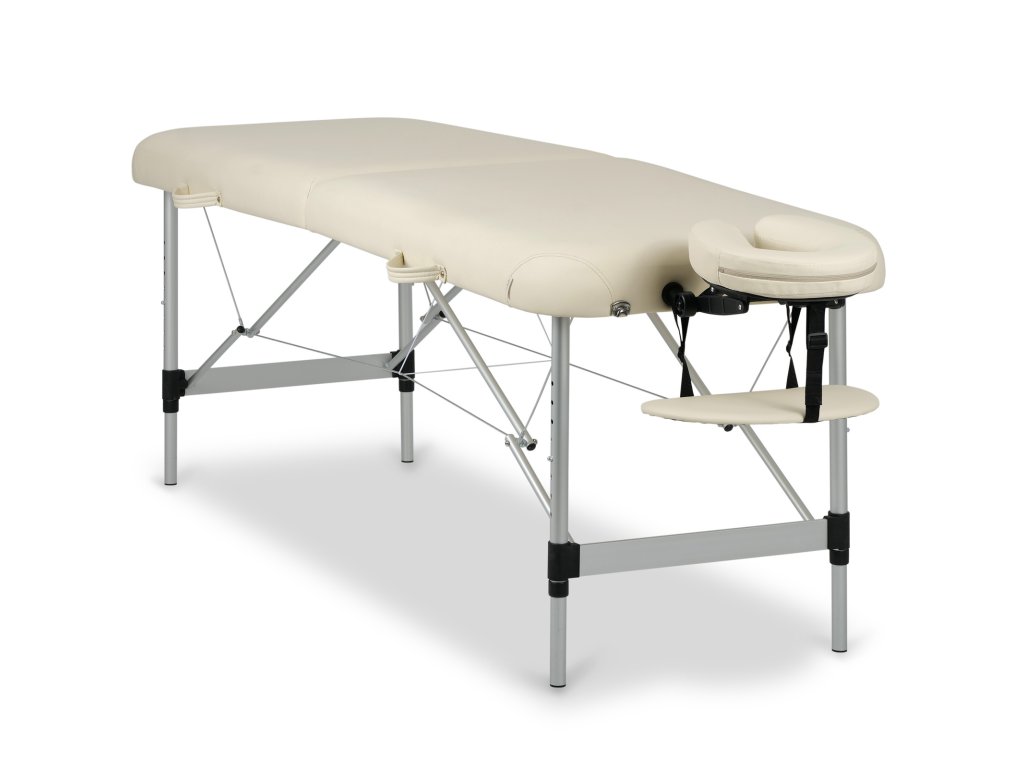 Ľahká hliníková konštrukcia: umožňuje jednoduché premiestňovanie a skladovanie, vďaka čomu je posteľ ideálna aj na mobilnú prácu.