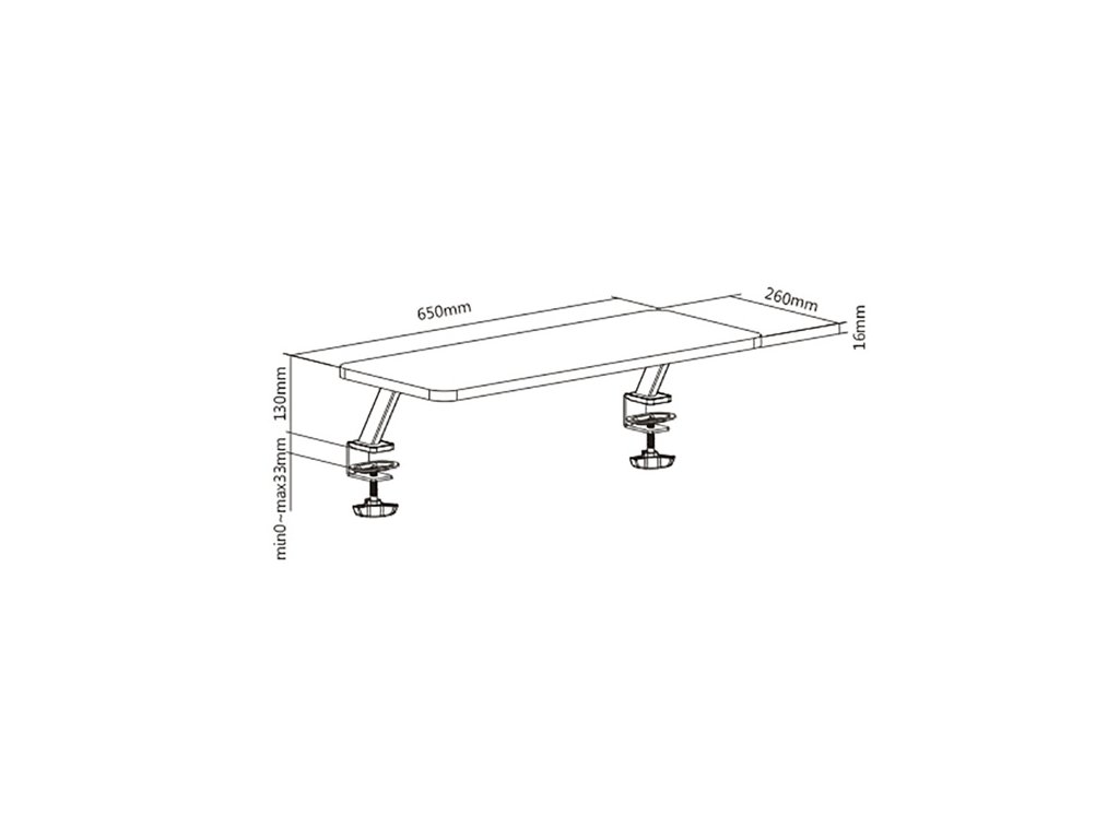 Podstavec upevníte na dosku stola pomocou dvoch odolných svoriek, takže nemusíte mať obavu o jeho pevnosť. Svorky sú určené pre dosky stola o maximálnej hrúbke 33 mm a vyzdvihnú Váš monitor či notebook o 13 cm.